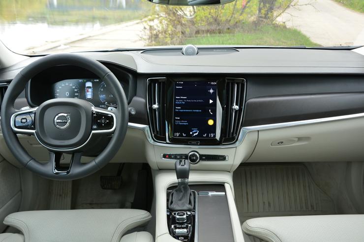 Вот чем Volvo V90 порадовал, так это своим поведением на дороге. Машина ну очень приятно — ровно, плавно и как-то непоколебимо, что ли, — идет даже по разбитому асфальту в самом востребованном диапазоне скоростей — до 100 км/ч. Тут мы имеем дело и не с комфортабельной диванностью Mercedes, и не с подчеркнутой собранностью BMW или «птенцов гнезда Volkswagen», а с чем-то средним. При этом слушается руля и управляется машина вполне по-немецки. До той же BMW, конечно далеко, но и Mercedes до современной Volvo в этом смысле — как до Луны.